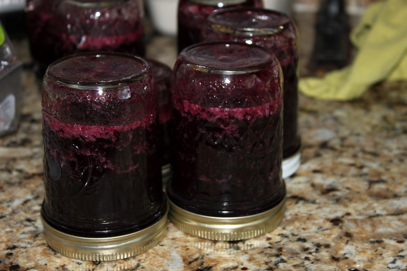 I turn my jelly jars upside down for a while after filling them. Is that what you do? I haven't tried any of the jam yet. Mom is in love with the sugery kind and I think I'll like the less sugar one.